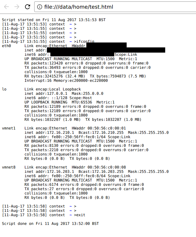 Metasploit’s (MSF) Spool function is similar to Script for the terminal. Spool will only record actions within MSF, so it’s good if you want a dedicated MSF log, rather than carving it out of your Script log file later.